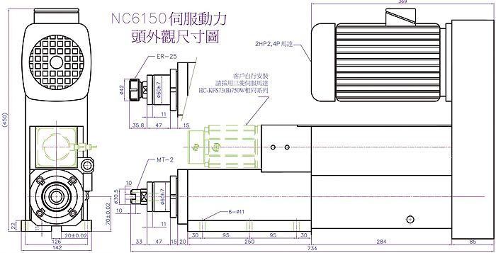 1. NC-6150H伺服钻孔动力头,台湾原装进口。