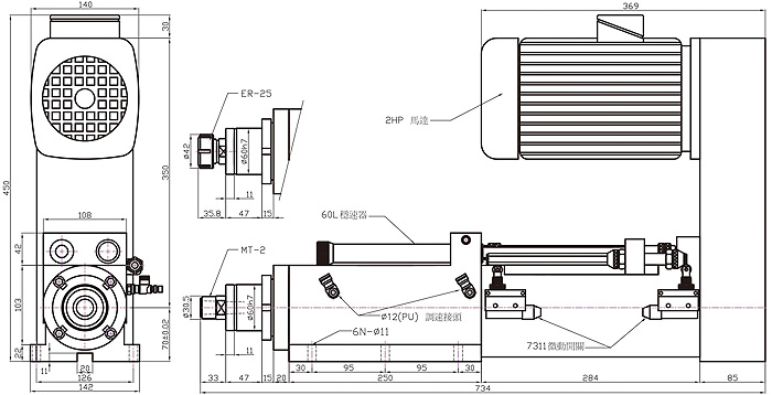 2. 加工能力:Φ16(AL),针对有色金属加工,切削力小。